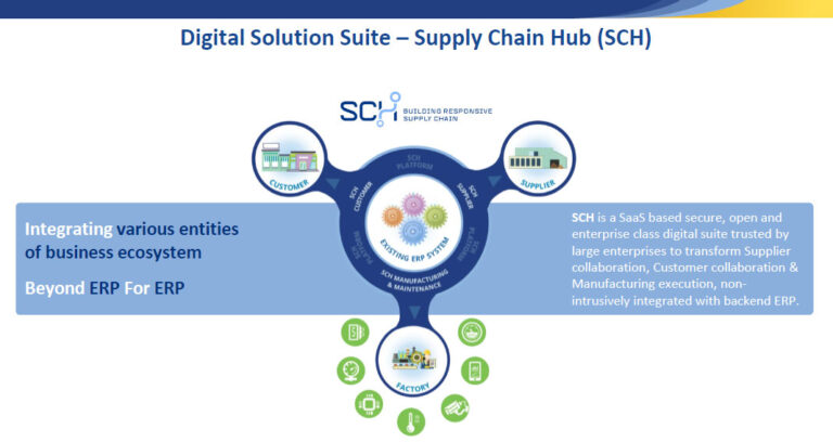 It connects an organization’s ERP systems, digital landscape and digital processes to the LAST MILE. SCH ( supply chain hub ) has 4 modules, that addresses the above 4 business functions, namely :